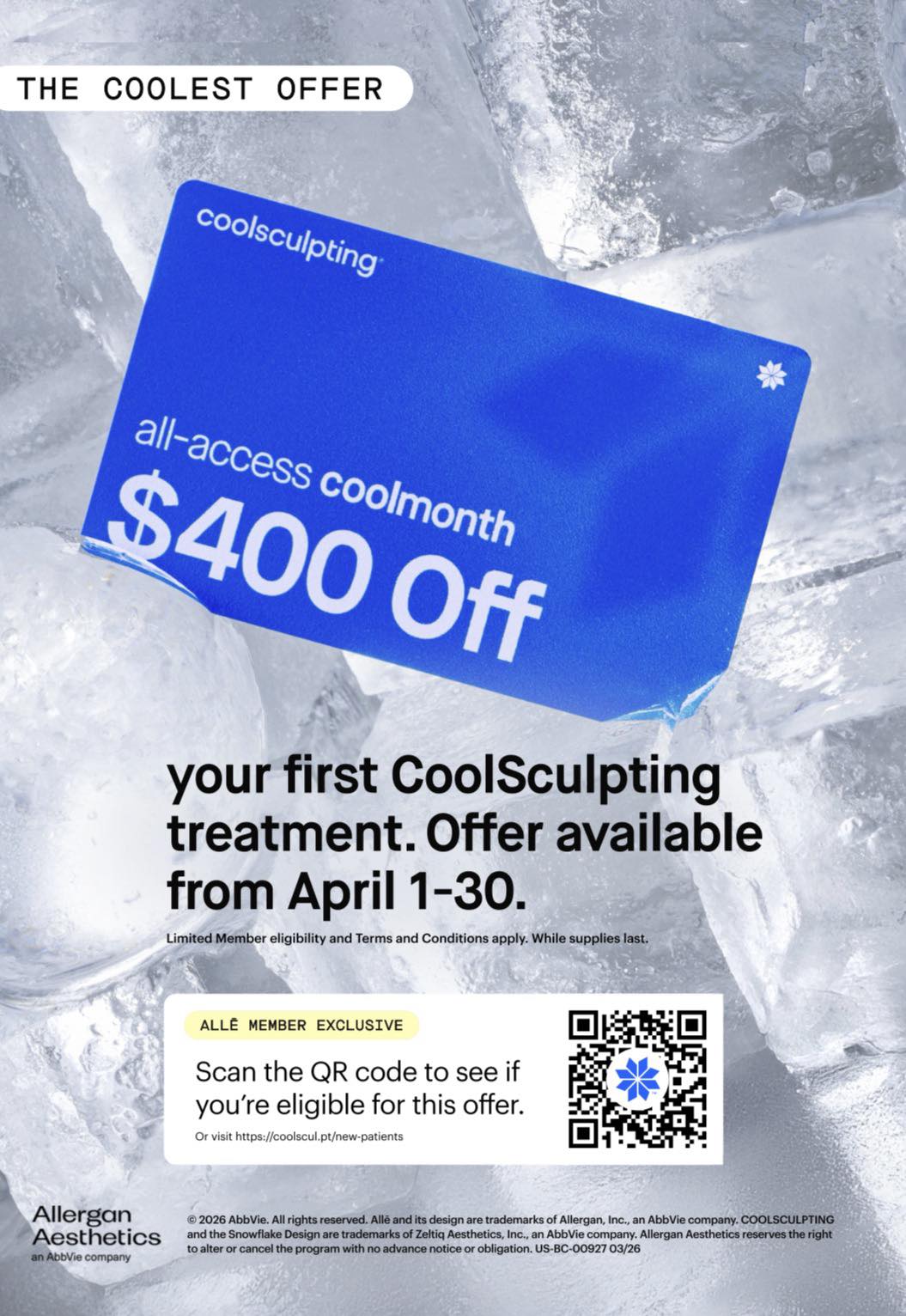 To celebrate the return of this popular treatment, we are offering a limited-time promotion throughout the month of April. New patients can receive $400 off their CoolSculpting treatment through Alle Rewards, making it the perfect opportunity to begin your body contouring journey.