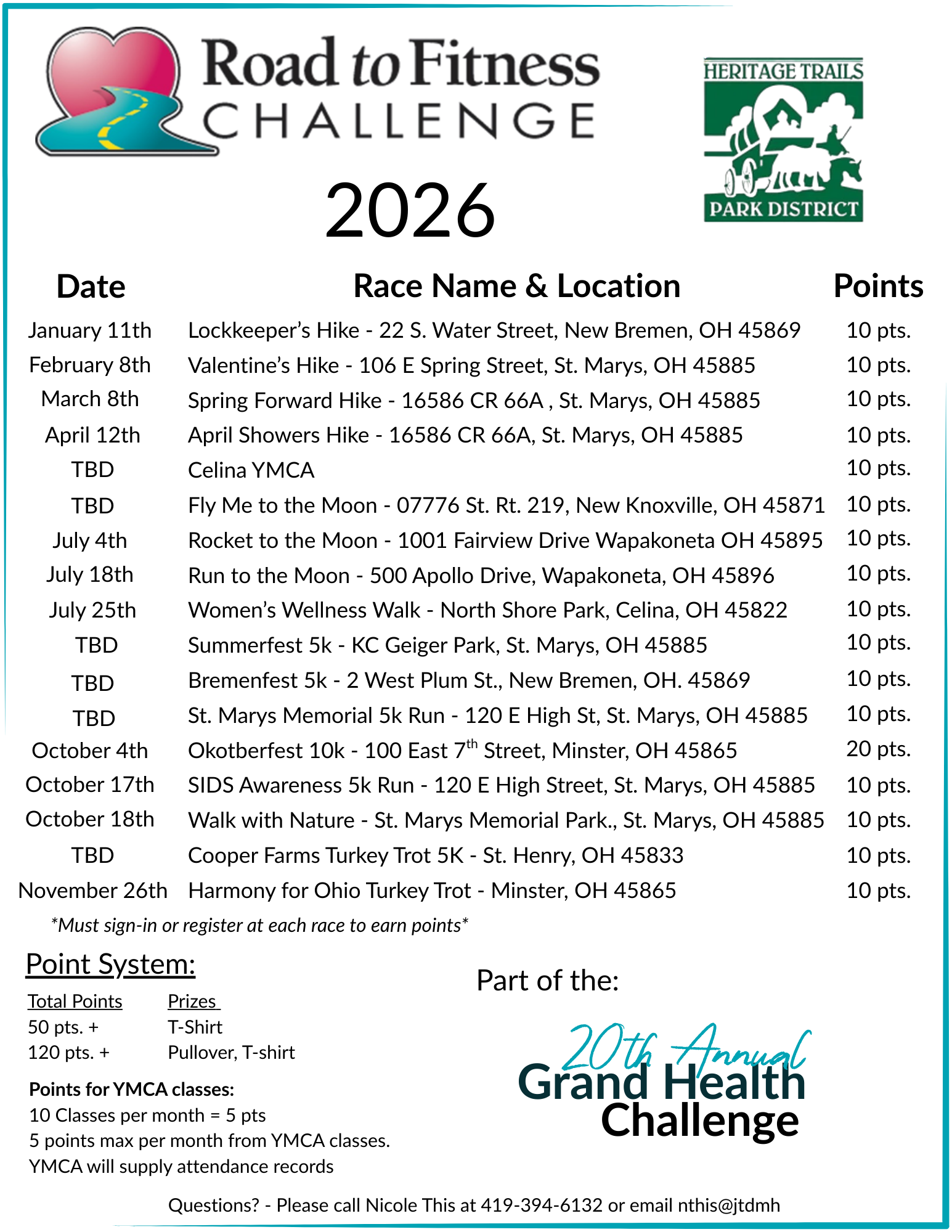 Road to Fitness is revamped to a smaller scale for your to obtain more points and win more prizes! The 2026 Road to Fitness runs from January to November and consists of a number of races and you earn points by participating in them or doing classes at the North, South & Otterbein YMCA.